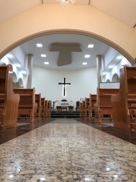 Quem passa pela Linha Vermelha ou pela Avenida Jones dos Santos Neves não deixará de se encantar com a igreja, erguida no alto de uma pequena colina. Embora transmita modernidade, a construção carrega quase 70 anos de história e devoção.
