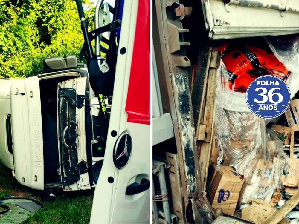 - Carreta que transportava produtos de uma rede de supermercados tombou na BR 101 Crédito: Redes sociais