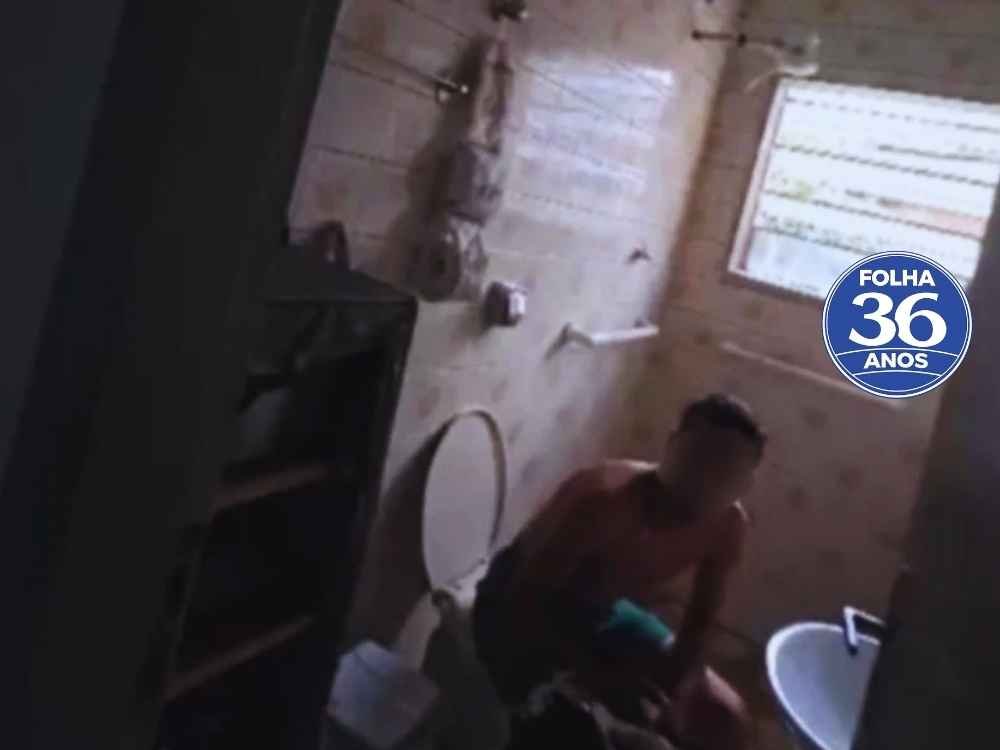 Em um dos endereços alvos, os policiais encontraram um dos investigados sentado no vaso sanitário e usando o celular. Um vídeo registra o momento em que um agente policial retira o aparelho das mãos do suspeito. Em seguida, pede que ele siga até a sala do imóvel.