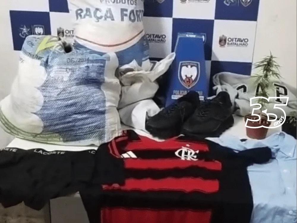 Durante a abordagem, o suspeito afirmou que havia mais roupas em sua casa. Com apoio policial, os agentes foram até o local e encontraram três sacos cheios de peças de roupa e tênis — alguns escondidos no quintal, embaixo de vegetação.