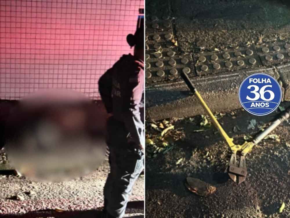 Durante a ocorrência, a polícia identificou que o homem utilizava um alicate reforçado, normalmente empregado para cortar correntes e cadeados. A equipe encontrou a ferramenta no chão e a recolheu para análise.