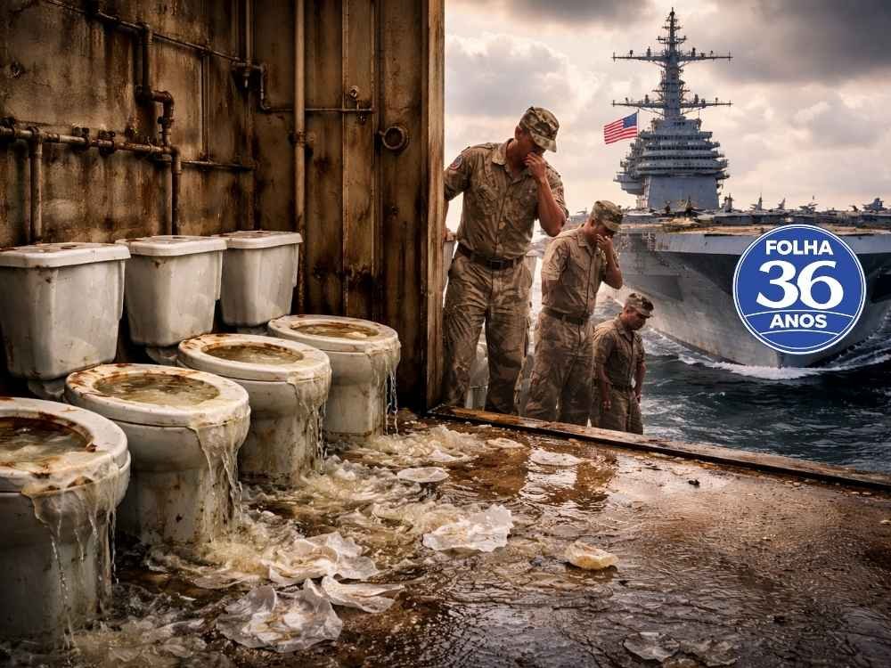 O USS Gerald R. Ford, considerado o navio-almirante da Marinha dos Estados Unidos, enfrenta falhas estruturais no sistema de esgoto, apesar de ter custado US$ 13 bilhões — cerca de R$ 66,7 bilhões na cotação atual. A informação foi divulgada pelo Wall Street Journal, que ouviu marinheiros e familiares da tripulação.