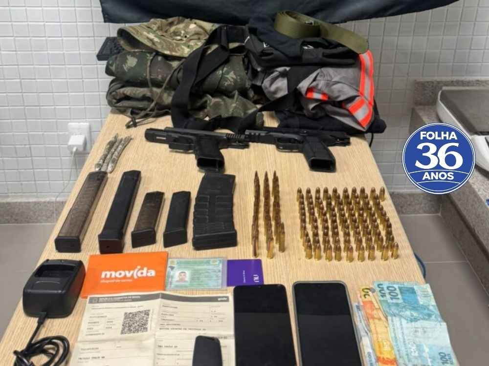 Durante a vistoria no interior do carro, os militares encontraram duas pistolas calibre 9mm, ambas com seletor de rajadas. Além disso, apreenderam 91 munições do mesmo calibre e 29 munições de fuzil calibre 5.56mm.